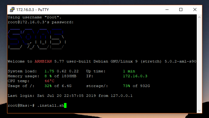要说 Linux 就是快啊,数秒之后便开机成功,咱们输入root账户的默认密码1234,执行./install.sh将 Armbian 写入内部存储 eMMC。顺利的话很快完成,然后拔掉电源拔掉 U 盘,重新启动后即可 SSH 远程登陆进行接下来的工作——请注意:最好给 N1 固定一个 IP 地址。