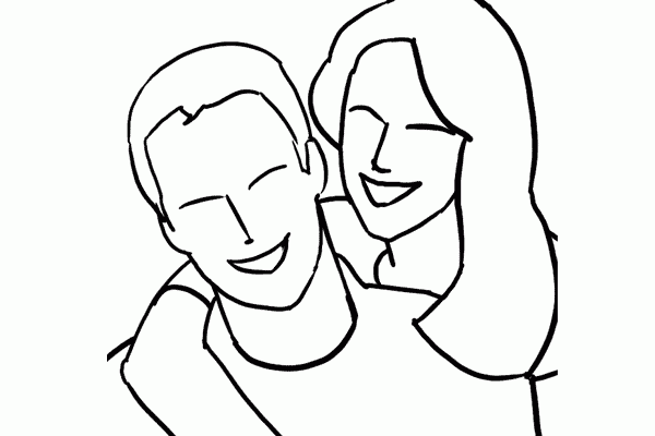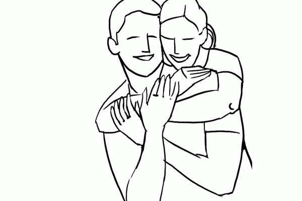 5、和前面的那张稍稍做些变化,她从后面环着他,记得不一定要看着镜头哦,为了得到更好的效果,可以让他们聊天啊,对视,或者笑等等都可以~