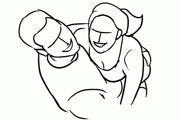 4、充满乐趣和爱的姿势,让她从后面搂着他的脖子。请注意,胳膊一定要注意自然哦,小心显得很累的样子。