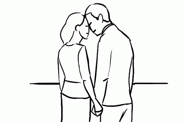 8、又一个 Romantic 的姿势,同样最好在空旷的外景,可以选一个明亮的背景以显示轮廓。如果是夕阳西下,调整机位把太阳挡在拍摄者之后,让光线从他们的脸庞中漏过来~