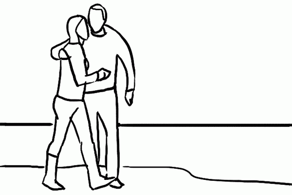 14、另一个边走边拍的姿势,两个人互相抱着,同样请注意快门和构图。