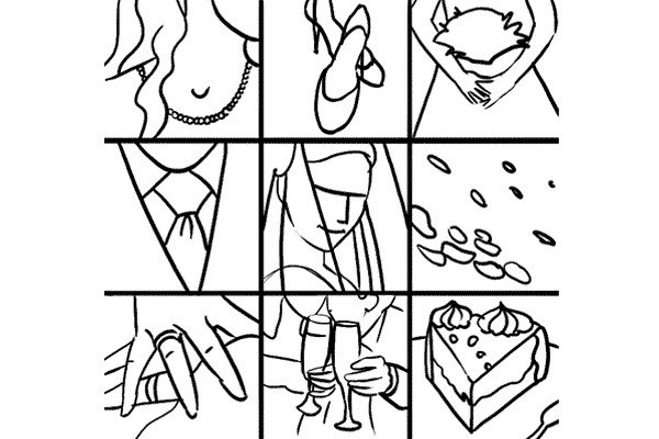 21、这个不是姿势,而是照片展示手法,将婚礼中一些具象征意义的画面、物品、时刻,裁剪及拼贴成一张作品,个别一些可以调至黑白色,会有不错的效果。