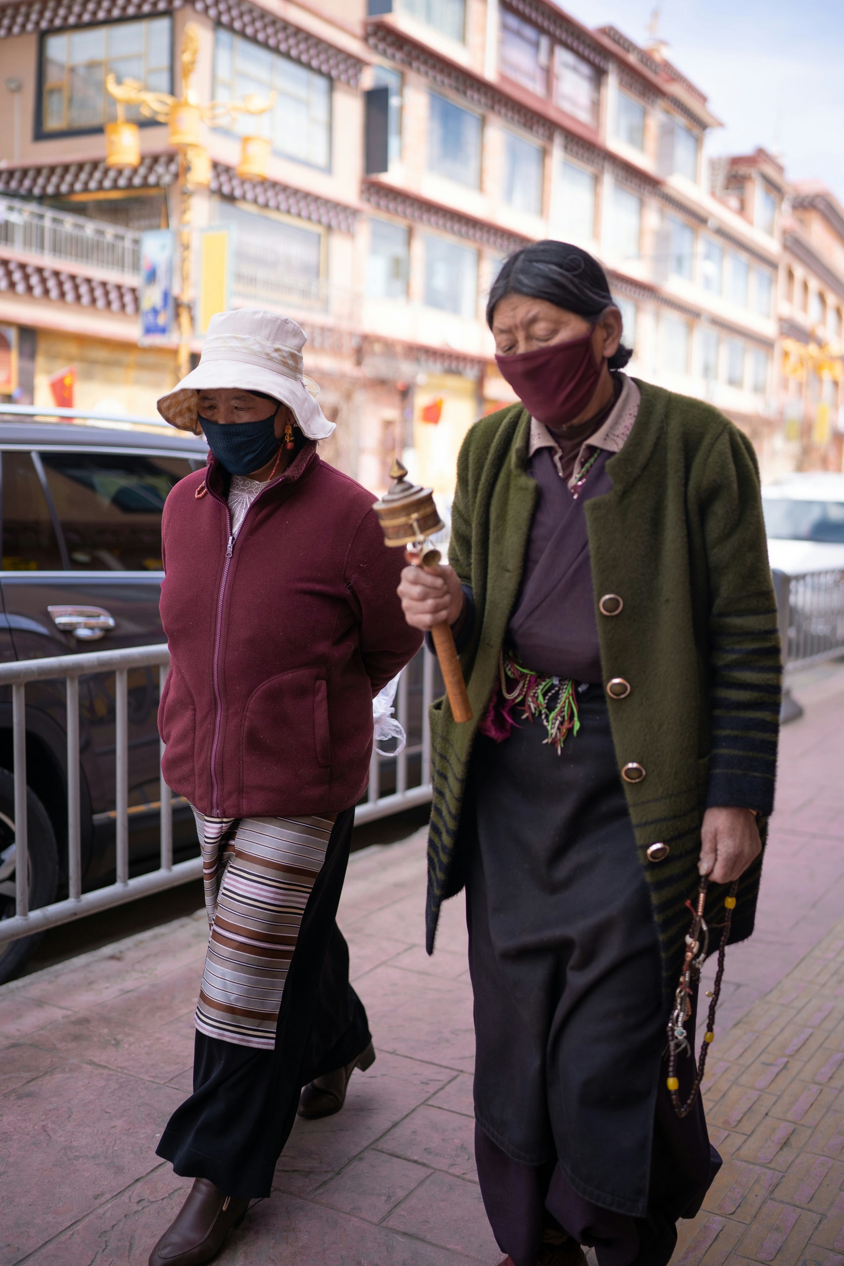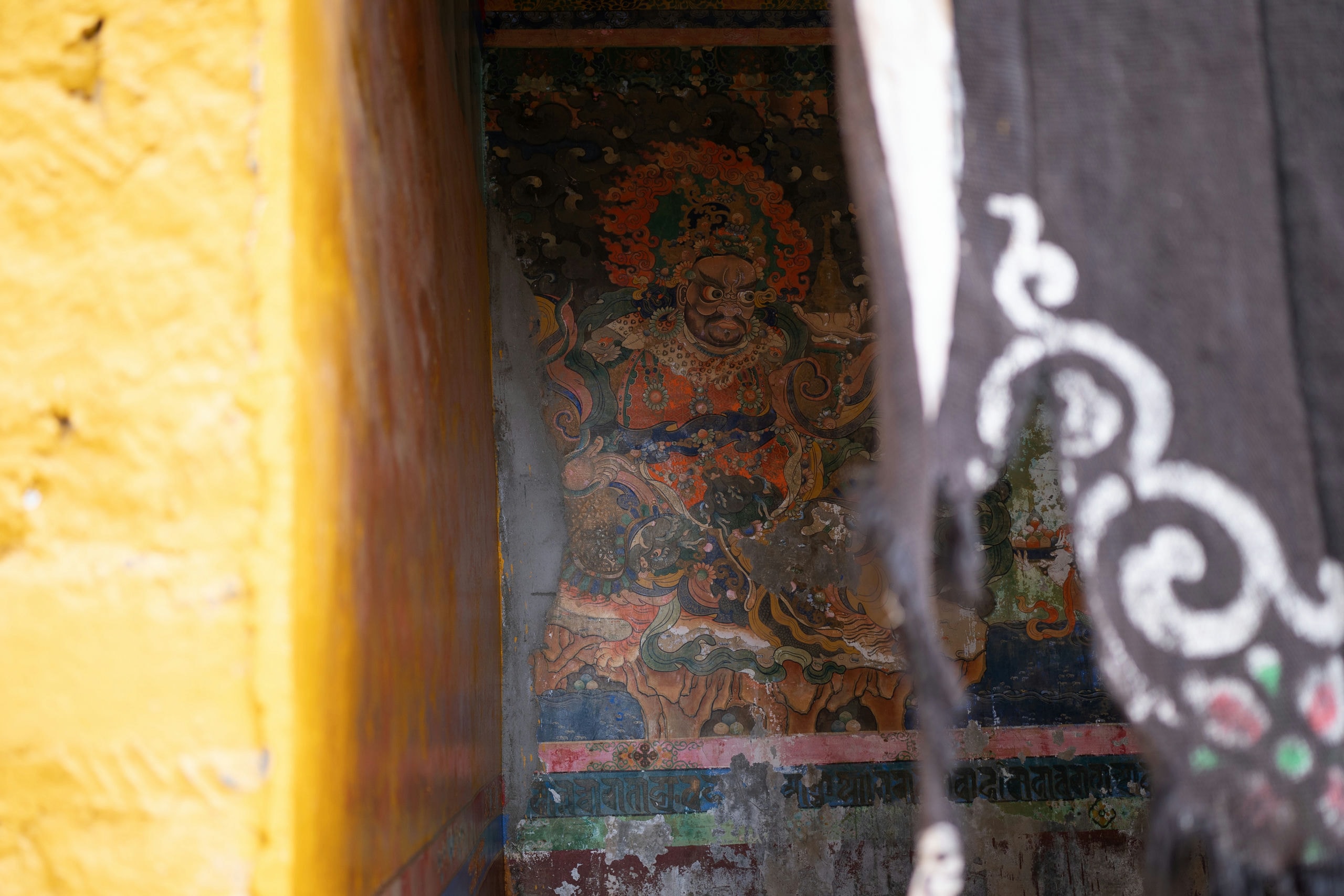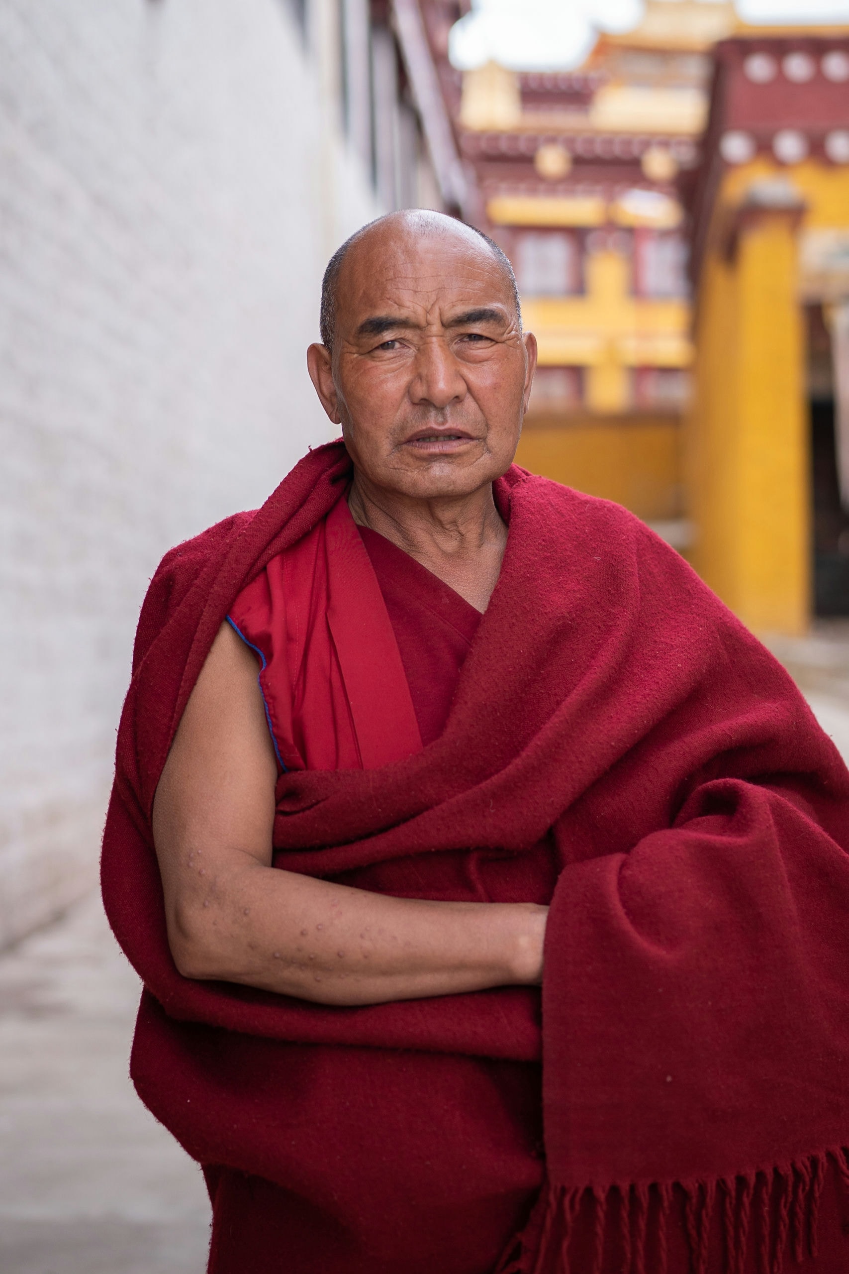 寺庙当天关闭,我甚至没有看到其他任何游客,只在它的核心地带见到十几个讲经的僧人。经我友好交流,我给其中一名僧人拍了一张肖像照片,并取得允许进入他们的讲经台(?)内。打开厚重的门帘,里面是个空高十几米,约四十米见方的巨大房间,房间正面是几尊金光闪闪的大佛,另三面墙则一层层地布满无数小佛像,点满了油灯,蔚为壮观。房屋中间是一层一层安置的条凳,那些僧人就居中端坐,轻声呢喃,念佛讲经。透过琉璃的阳光就着油灯的微光,经红墙金佛反射到僧人身上,显得昏暗又明亮,安静而肃穆,坚定且神圣。我轻轻走到几尊主佛面前,微微屈身,脑里闪过亲人朋友的面目,祈祷他们平安喜乐。