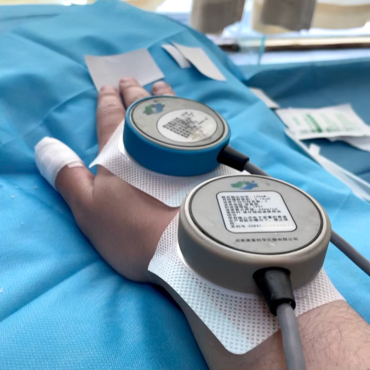 那会儿我听了医生介绍额外选择了所谓的“介入治疗”,实际上呢就是在抹上药膏之后在手臂上贴两个电极,持续用低电压流过手臂(神经)以刺激药膏迅速进入身体……我当时可能确实被电打了才多花钱选这么个治疗方式,被电打五分钟两百块钱呢,害!