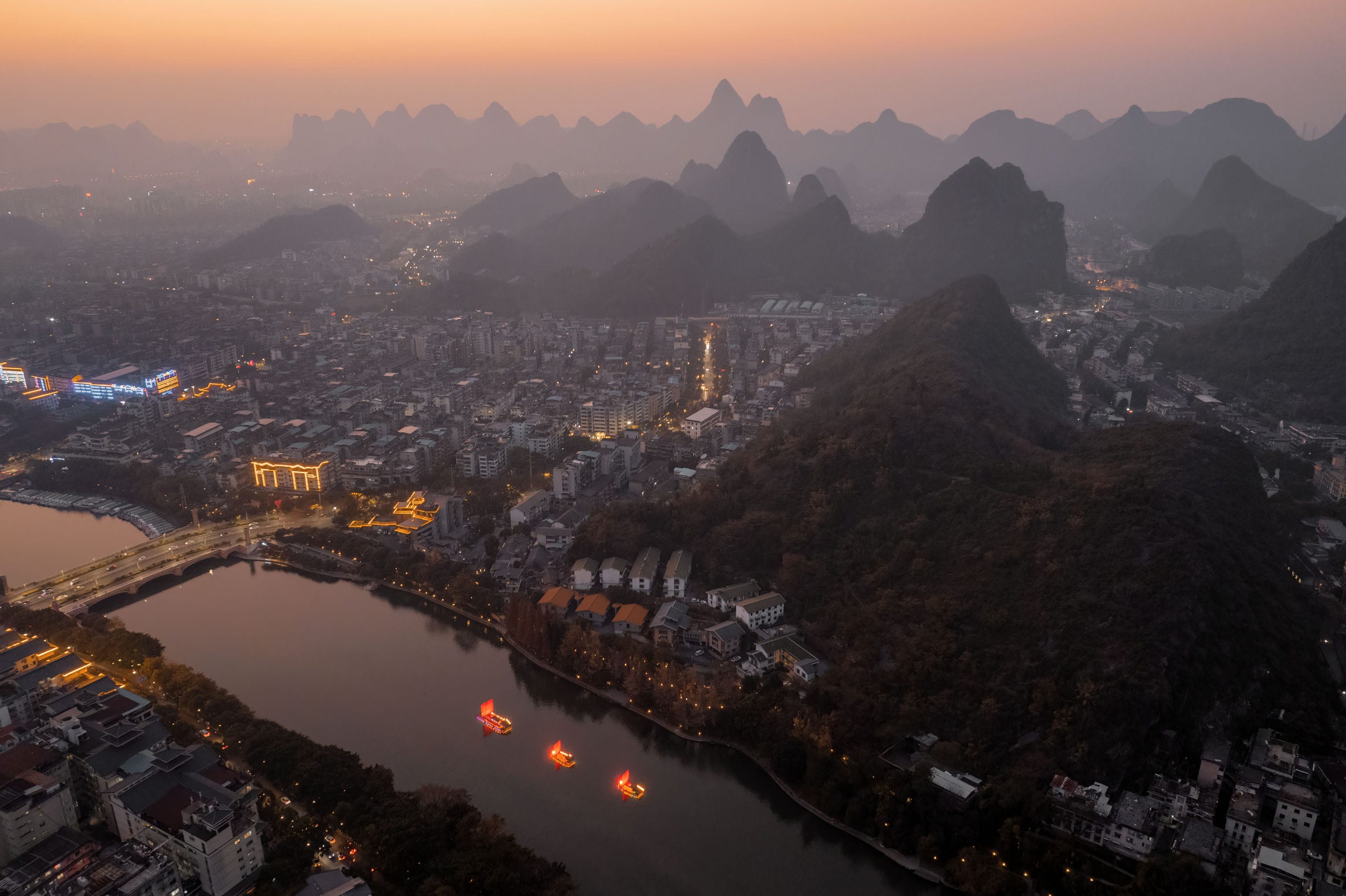 桂林山水甲天下,阳朔山水甲桂林,而阳朔出游在兴坪。包括桂林最富盛名的九马画山、螺蛳山、莲花岩、天水寨、灵宝阁、二十元背景等景点都在兴坪,不过作为山城重庆的人,对这些地方其实兴趣不大,也确实没啥看头,凑合看看后期过的照片吧。
