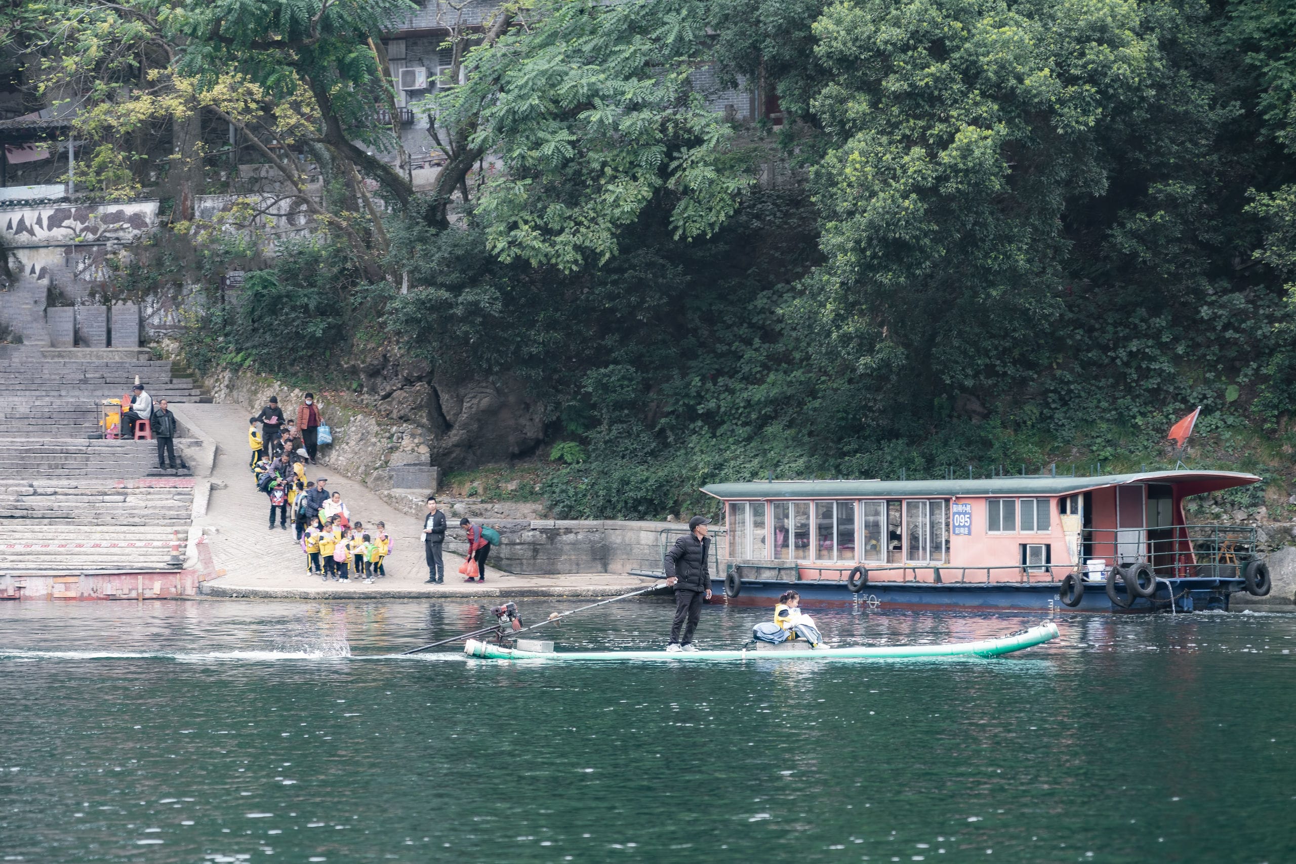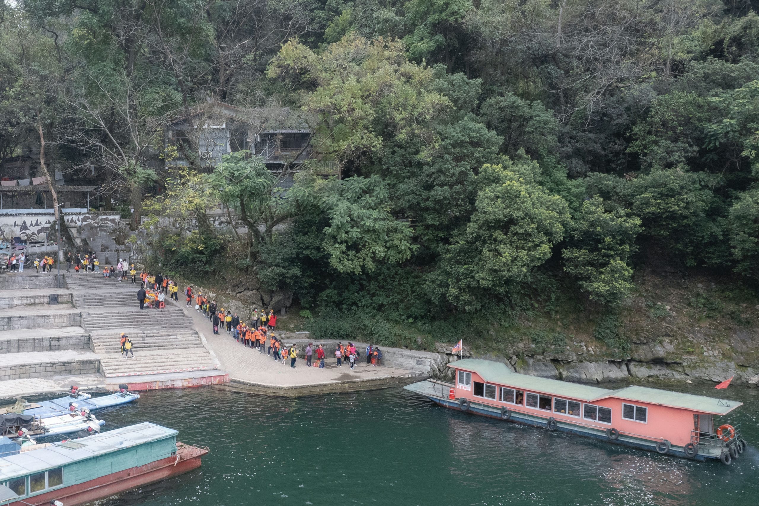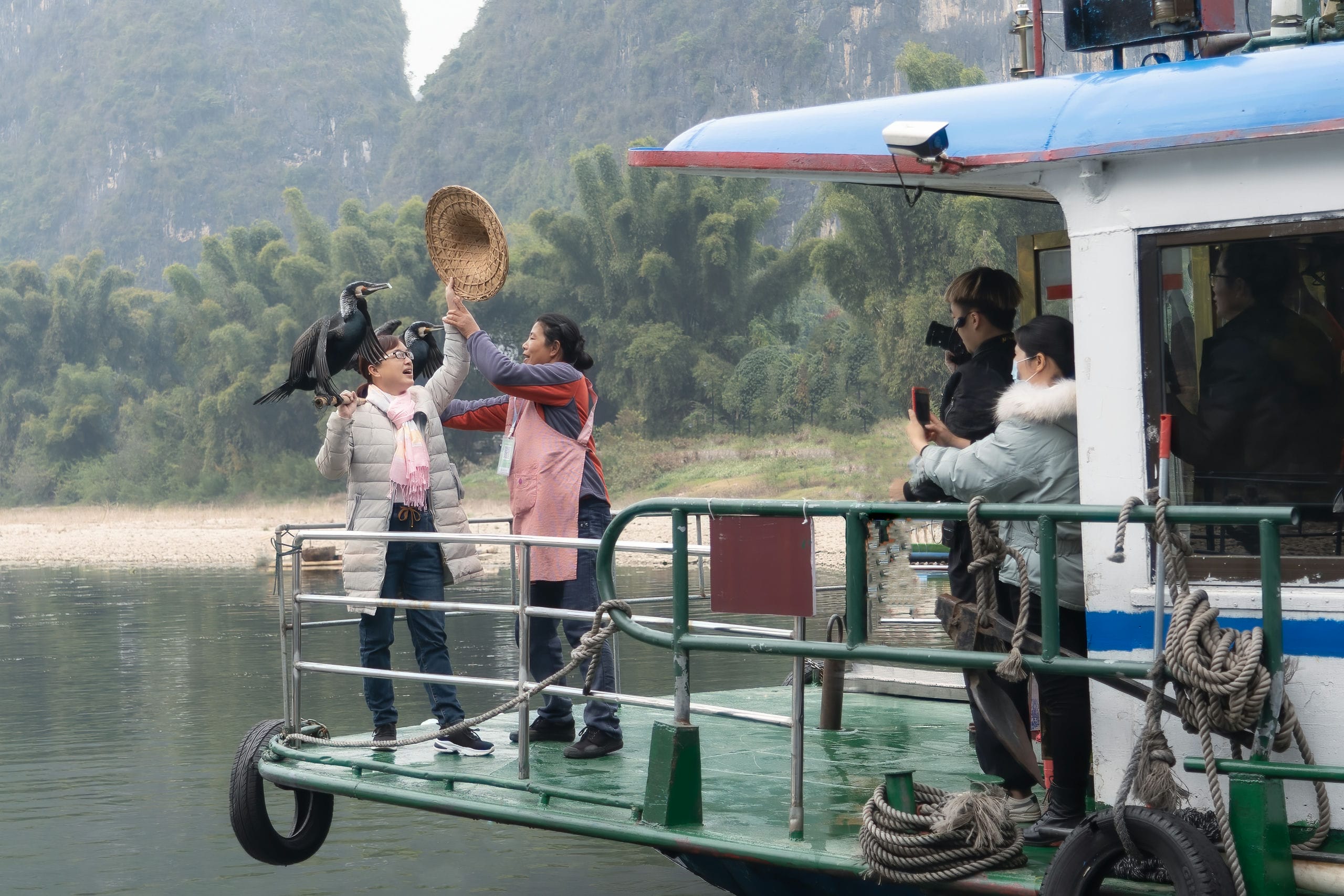 我们报了 100 块的一日游,导游和大巴帮我们带逛了桂林比较值得的经典,个人感觉还挺值的——道然如图二所示的购物点是必不可少的,无非是各种药材、银饰等,不在话下。上图一是游客和鸬鹚合影,图三是家长用小舟接下学的小朋友。