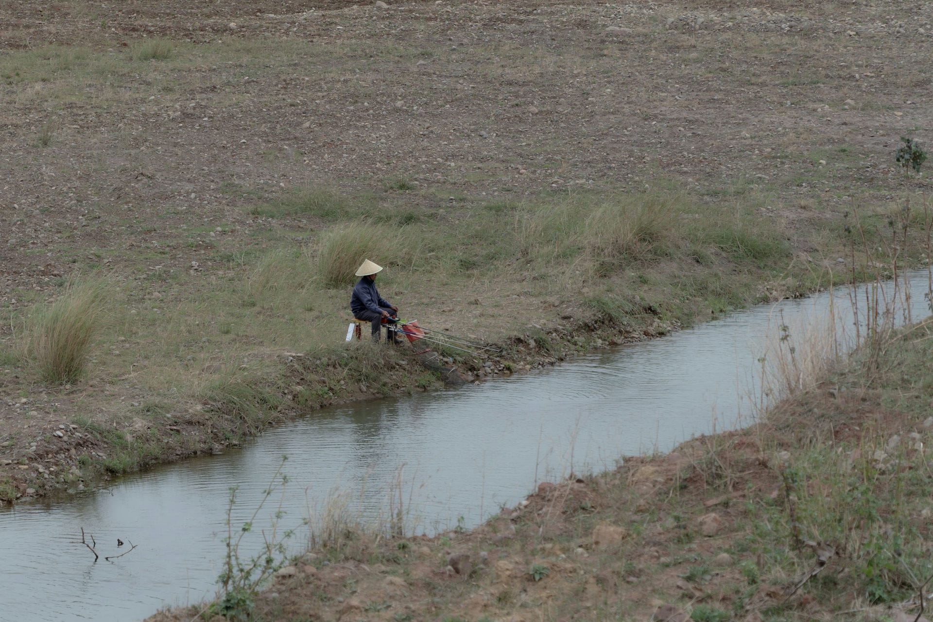 此时正是枯水期,安宁河在这一段分裂成了平行的两条水流,最窄处不过数米,不少人在里面钓鱼