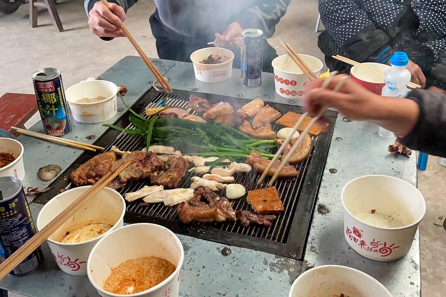 最后一天晚上,在二姨家烤“火盆烧烤”