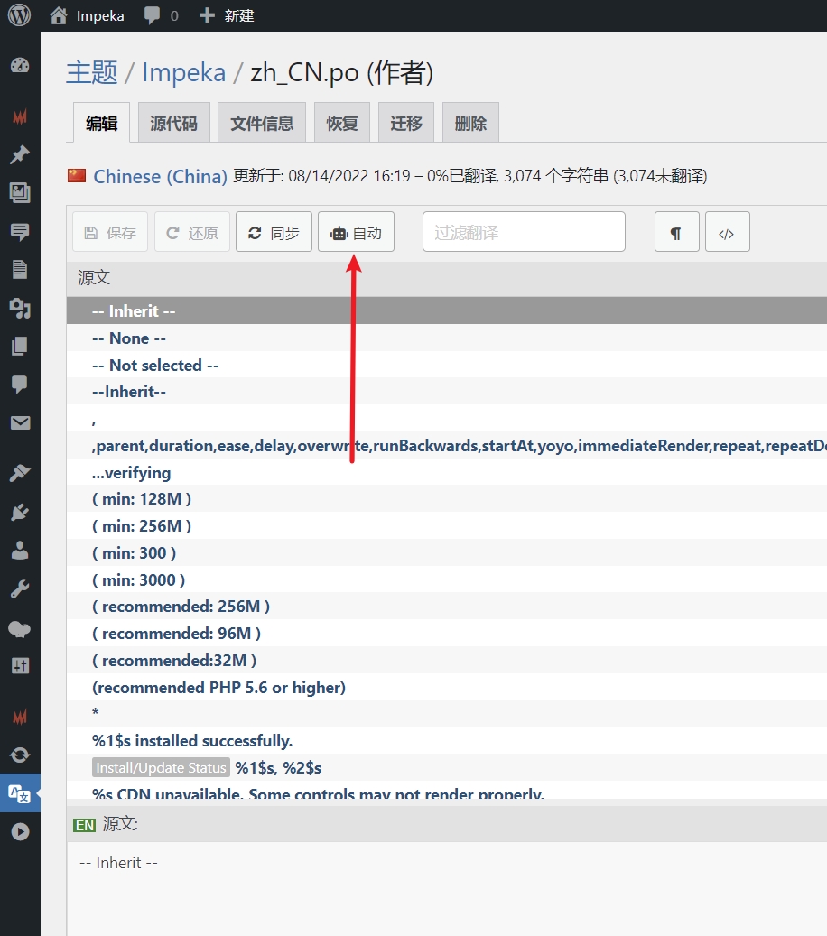 Google又建议直接使用翻译插件,这个板块里面最知名的应该是Loco Translate,这软件在Wordpress插件仓库里有着接近满分的好评,我下载之后确实体验不错,其界面样式和Poedit比较相似,支持逐条翻译和自动翻译,使用非常方便。
