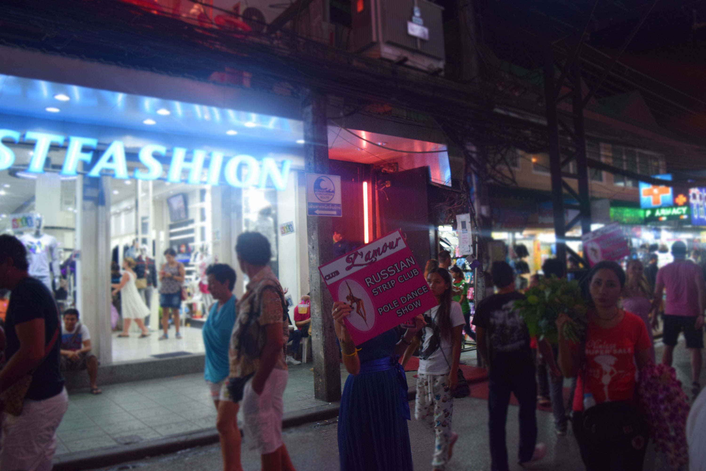 招揽客户的俄国女人。上图摄于酒吧街,当时这个俄罗斯女人正在招揽客户,见我拿相机对着她立马拿牌子遮住了脸,此后我便收起了相机,没怎么拍照了…另外:人妖秀和成人秀都是命令禁止拍照的