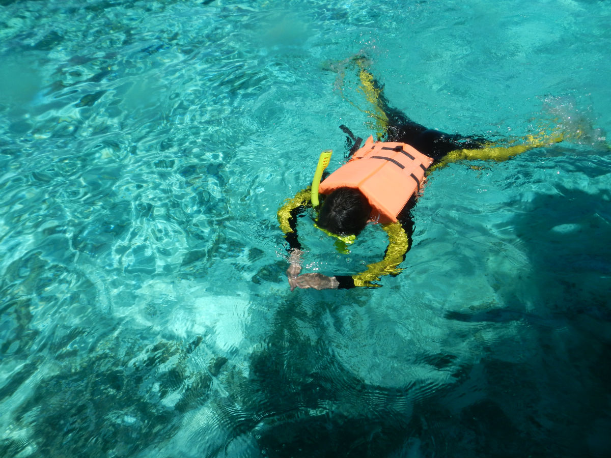 说下浮潜。浮潜是指使用一根呼吸管在水面上漂浮游泳,而我个人则更喜欢穿件小号的救生衣飘在水里捉小丑鱼。这种运动在热带度假村是一种很普及的休闲活动,其最重要的吸引力在于不需要水肺潜水那样复杂的设备和训练就可以在自然环境中观察水下生物,另外在观察的时候不会受水泡的干扰。