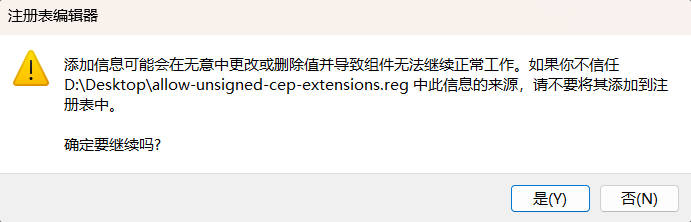 对于 Windows 用户来说,解决这个问题的核心思路其实很简单:通过修改注册表,开启 Photoshop 对未签名扩展的支持。不过如果你手动去一个个创建键值,不仅麻烦,而且很容易出错。这里更推荐一个简单粗暴但非常实用的方法——直接导入 .reg 注册表文件,一步到位完成配置。