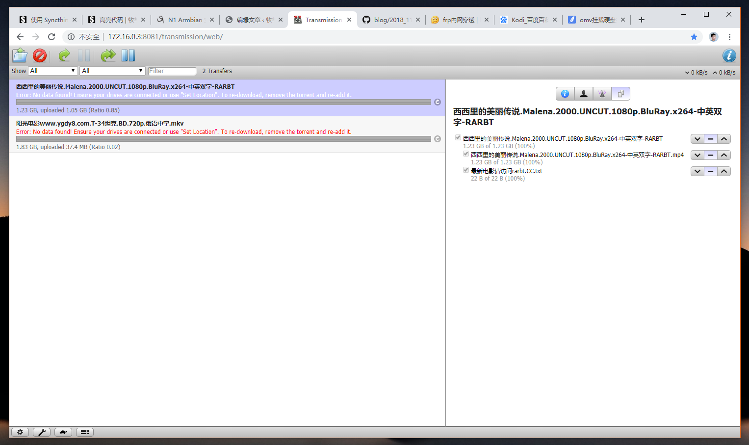 直接在 OMV 插件库里面安装openmediavault-transmissionbt插件,这个插件可以实现和迅雷几乎一样的功能,比方说磁力链接、限速、线程选择、可选下载等等。
