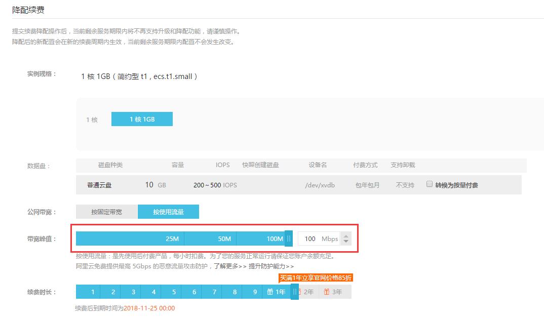 我这台 ECS 弹出来的续费方式比较奇葩,简言之是:硬件设备包年付费(预付费),宽带流量部分按量计费(账户余额)。因此我付了两笔款,先是包年的预付费,然后再充值了 100 作为余额,起先我以为这“预付费”是可以作为流量使用费用被慢慢扣的,结果才发现它只是租设备的固定费用!如此一算,我算是亏到唐家沱了!