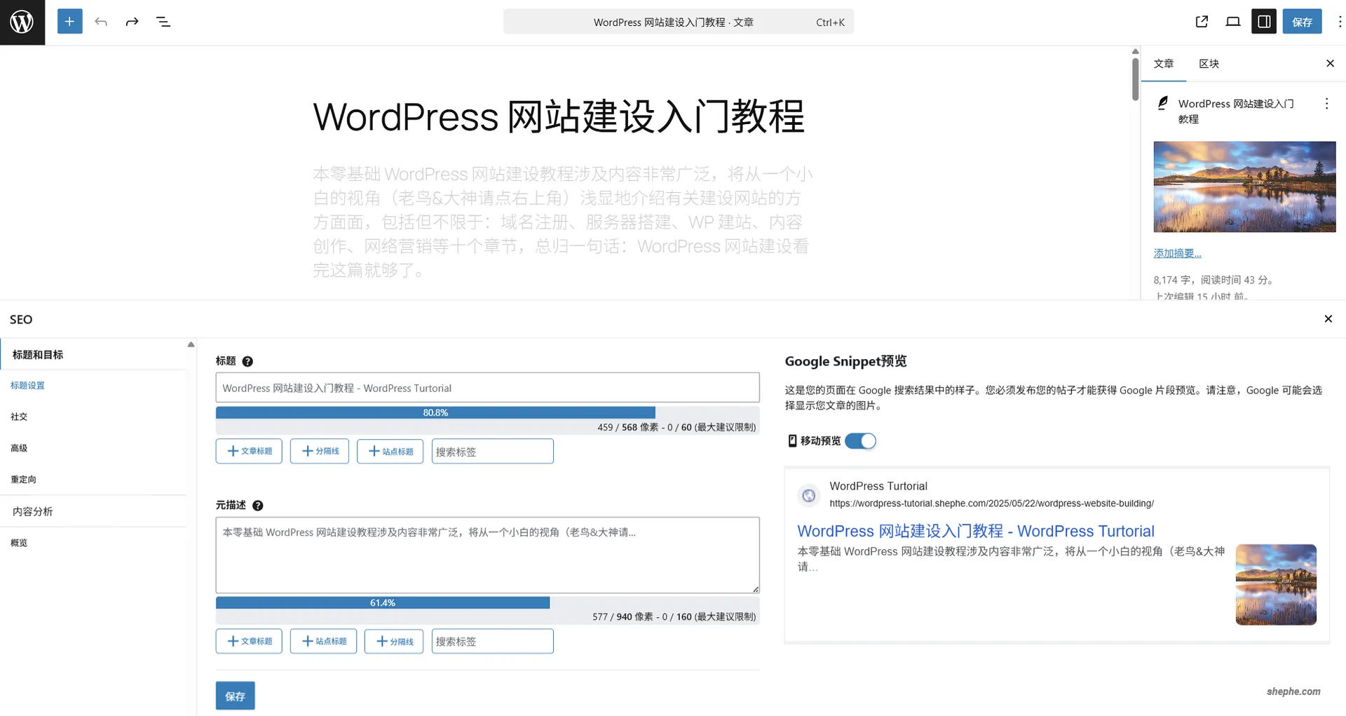 - 限定编辑权限,比如只允许管理员或编辑用户修改 SEO 设置,避免普通作者误操作。